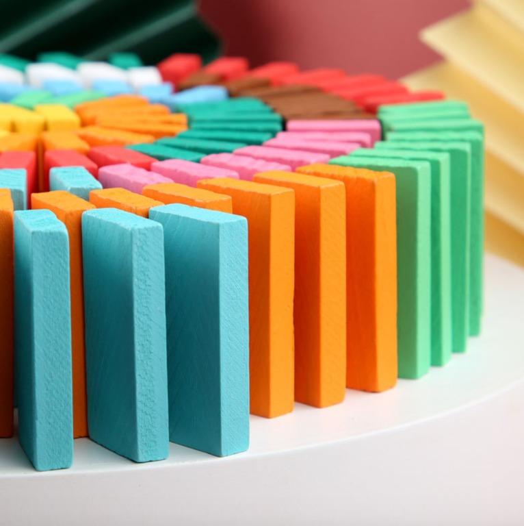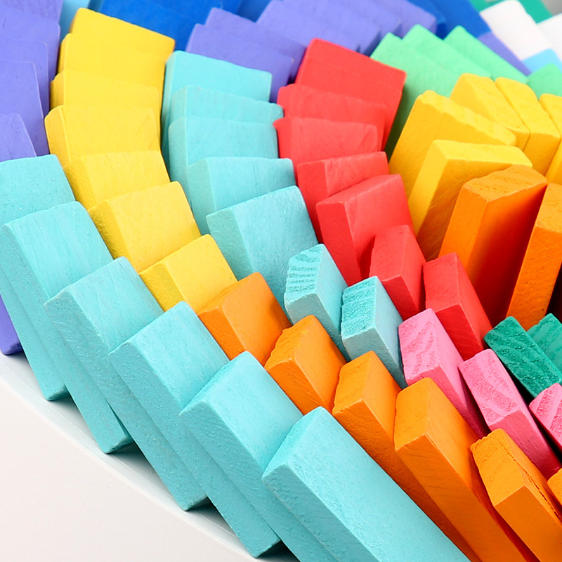 這款西洋骨牌,又稱為多米諾骨牌,採用了松木製作,有 12 種顏色,使用吸塑包裝,每包 120 塊。骨牌的遊戲規則非常簡單,將骨牌按一定間距的尺寸排成單行,或分行排成一片。當推倒第一張骨牌,其餘會發生連鎖反應依次倒下,或形成一條長龍,或形成一幅圖案,變化萬千。